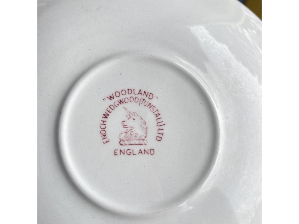 Značka Woodland – Enoch Wedgwood (Tunstall), která potvrzuje původ u renomovaného anglického výrobce s dlouhou keramickou tradicí.