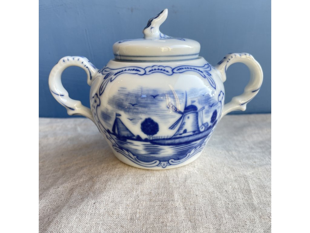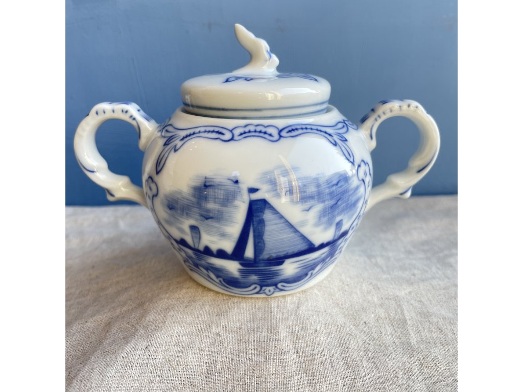 Cukřenka zdobená modrobílým dekorem ve stylu „Delfts“.
