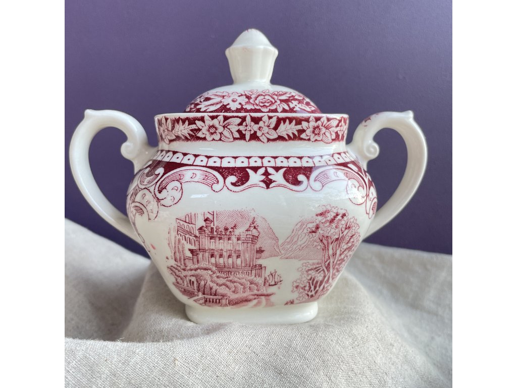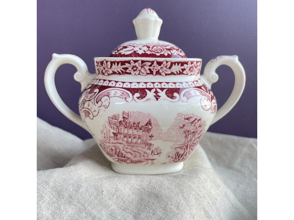Design cukřenky je bohatě dekorován transferovým tiskem v sytě červené barvě.