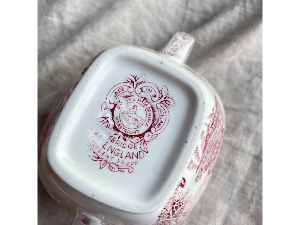 Výrobní značka na spodní straně ukazuje kombinaci nizozemského původu (Royal Sphinx, Maastricht, Holland) a britského trhu, pro který byla tato cukřenka pravděpodobně určena.