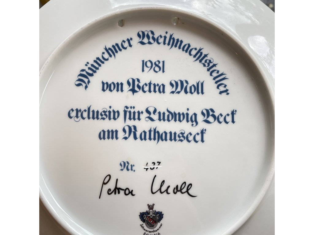 Dekorační porcelánový talíř nese název „Münchner Weihnachtsteller 1981“, tedy „Mnichovský vánoční talíř 1981“, a je dílem německé umělkyně Petry Moll.
