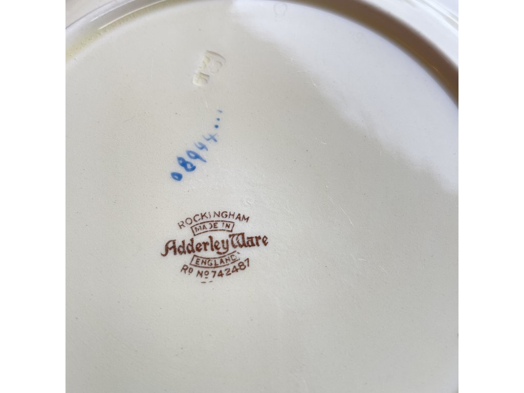 Značka Adderley Ware s označením Rockingham, která potvrzuje původ v tradičním keramickém regionu Staffordshire.