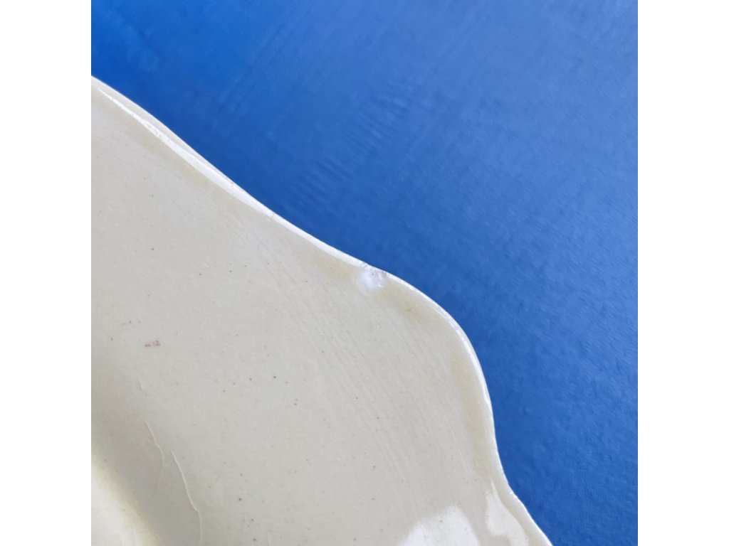 Je vyroben z jemné anglické kameniny s krémově bílou glazurou, na níž je patrná přirozená krakeláž, typická pro starší výrobky tohoto typu.