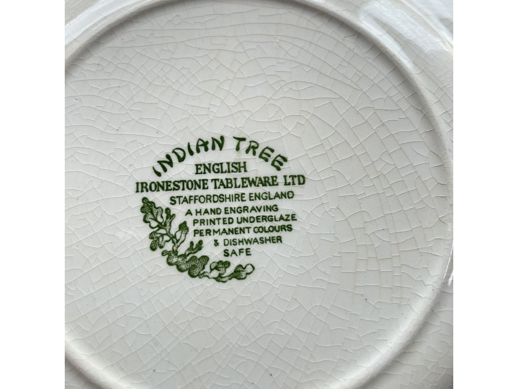 Talíř pochází z oblasti Staffordshire dekor Indian Tree.