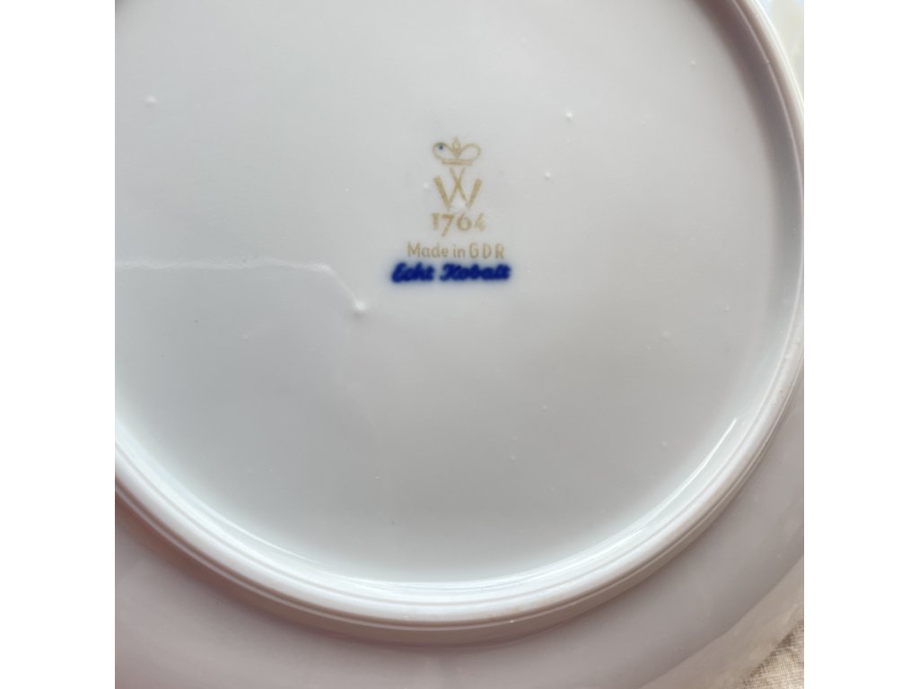 Talíř je z dílny porcelánky Wallendorf, jejíž tradice sahá do 18. století, přičemž označení Made in GDR dokládá výrobu v období Německé demokratické republiky, tedy zhruba mezi lety 1949–1990.