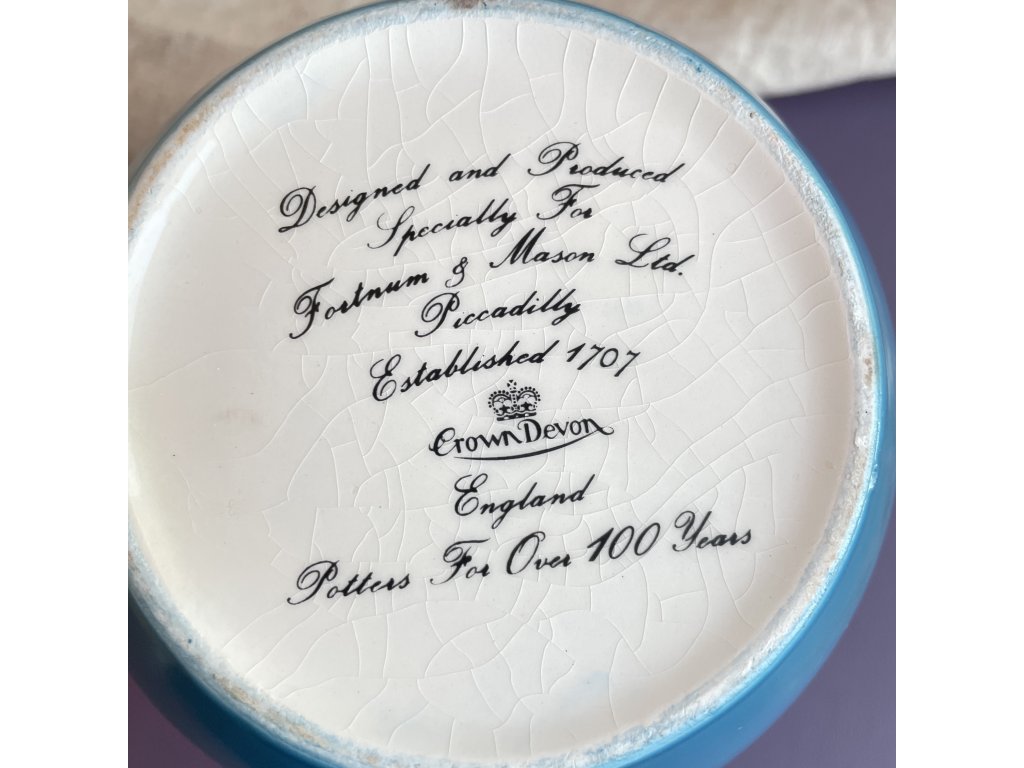 Dekorativní porcelánová dóza je elegantním kusem klasického anglického porcelánu, který byl navržen a vyroben exkluzivně pro slavný londýnský obchod Fortnum & Mason Ltd., sídlící v Piccadilly.