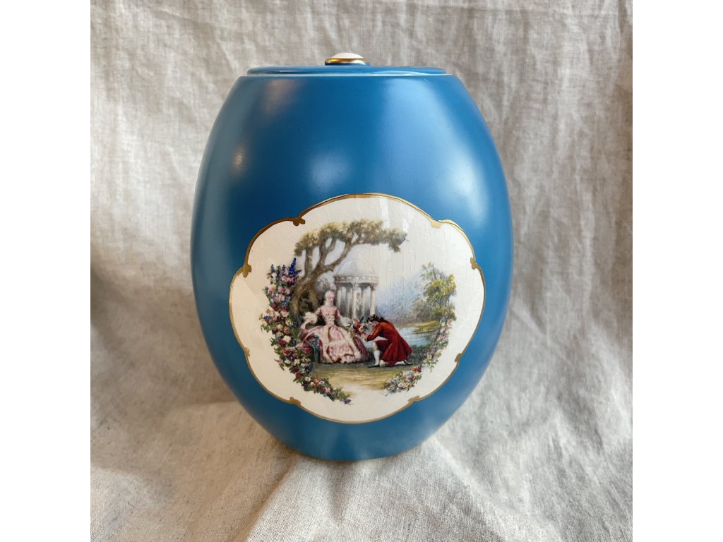Dóza má jemně popraskanou glazuru (craquelure), což dodává starožitný vzhled.