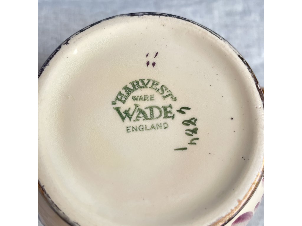 Značka potvrzuje původ džbánku v Anglii a jeho zařazení do produkce známé keramické manufaktury Wade, která byla ceněna pro kvalitní užitkovou keramiku s dekorativním pojetím.