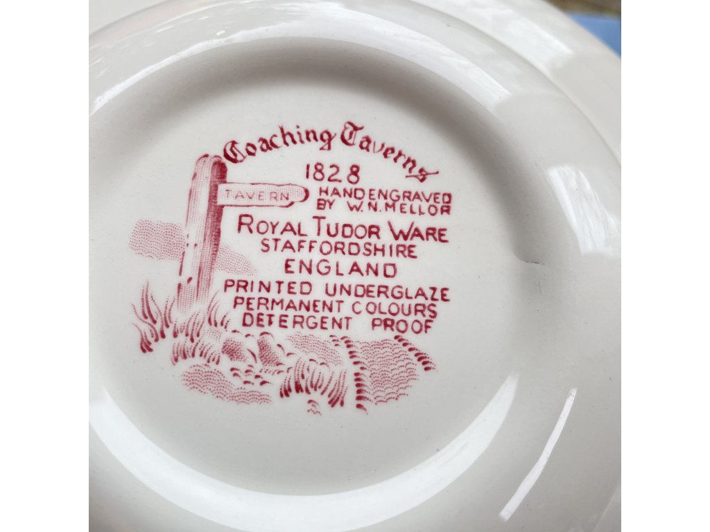 Talíř pochází z anglické produkce Royal Tudor Ware ze Staffordshiru a je součástí série „Coaching Taverns“, která tematicky vychází z historických hostinců a dostavníkové dopravy 19. století.
