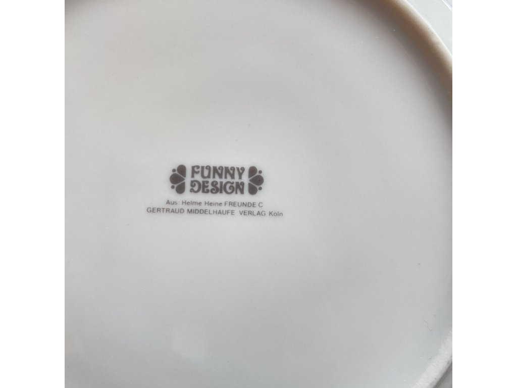 Hluboký talíř je vyroben z kvalitního, hladkého bílého porcelánu a jeho dekor vychází z populární dětské ilustrace německého autora Helme Heine.