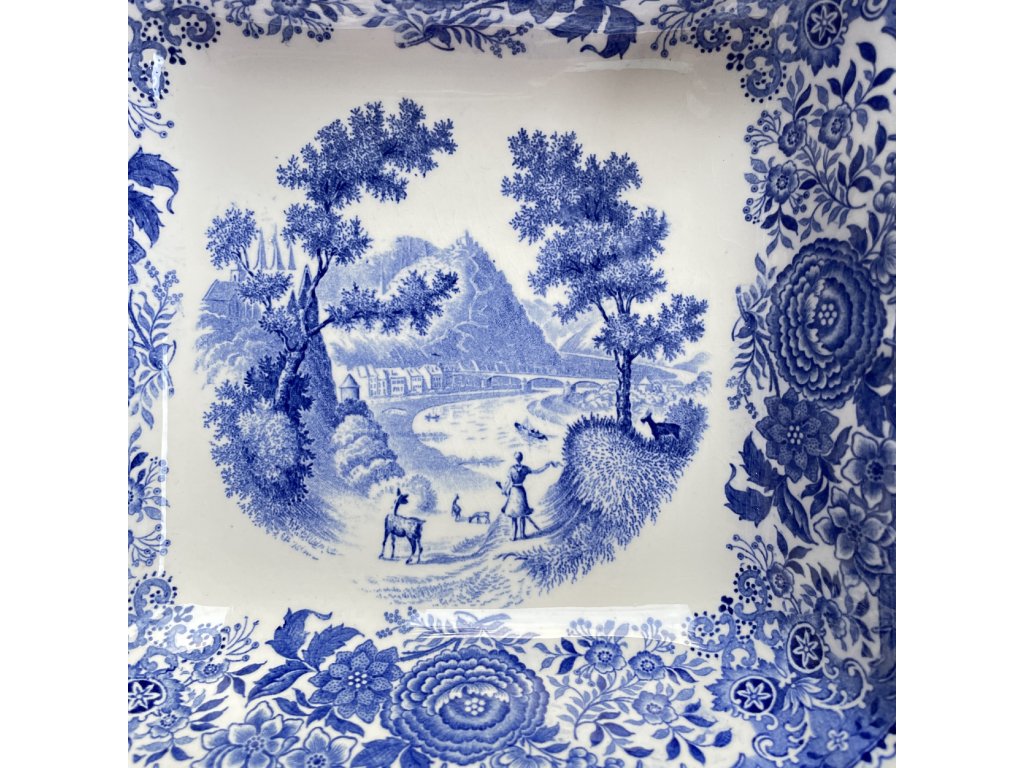 Mísa má čtvercový tvar se zaoblenými rohy a zvlněným, mírně vystouplým okrajem. Celý povrch je bohatě dekorován jemně propracovaným modrobílým motivem.