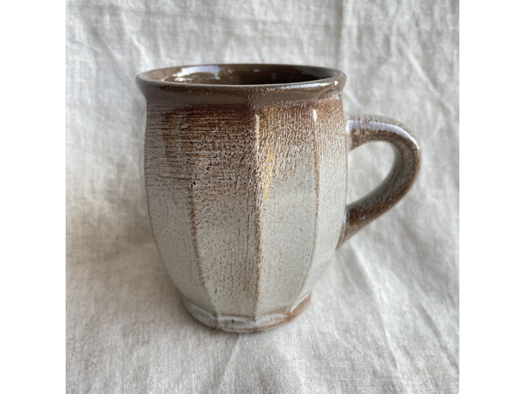 Hrnek má výrazně modelované stěny s lehce členěným povrchem, jenž podtrhuje ruční práci a dodává každému kusu originální charakter.