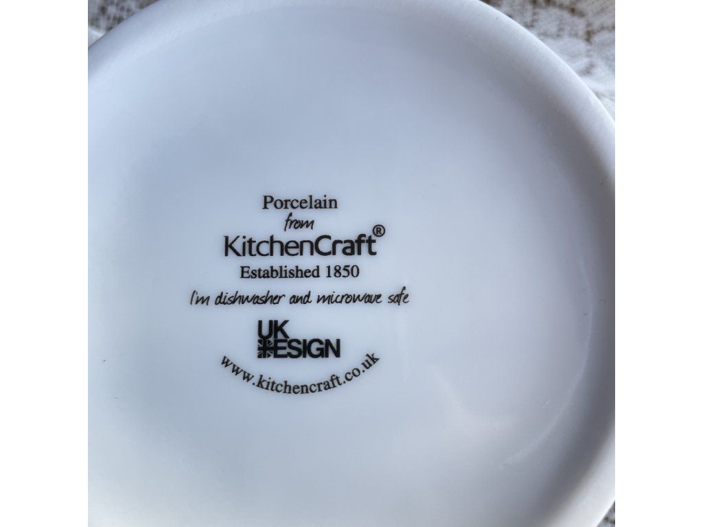 Porcelain from KitchenCraft, doplněné označením UK Design a informací, že hrnek je vhodný do myčky i mikrovlnné trouby.