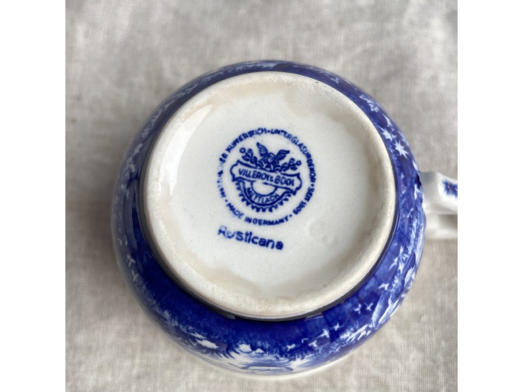 Šálek s podšálkem je zdoben klasickým modrobílým dekorem Rusticana, který patří k nejznámějším a nejoblíbenějším vzorům tradiční evropské stolní keramiky.