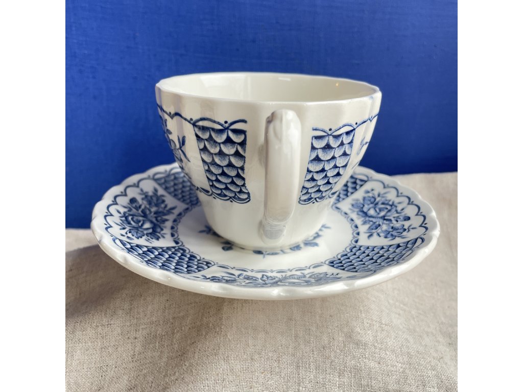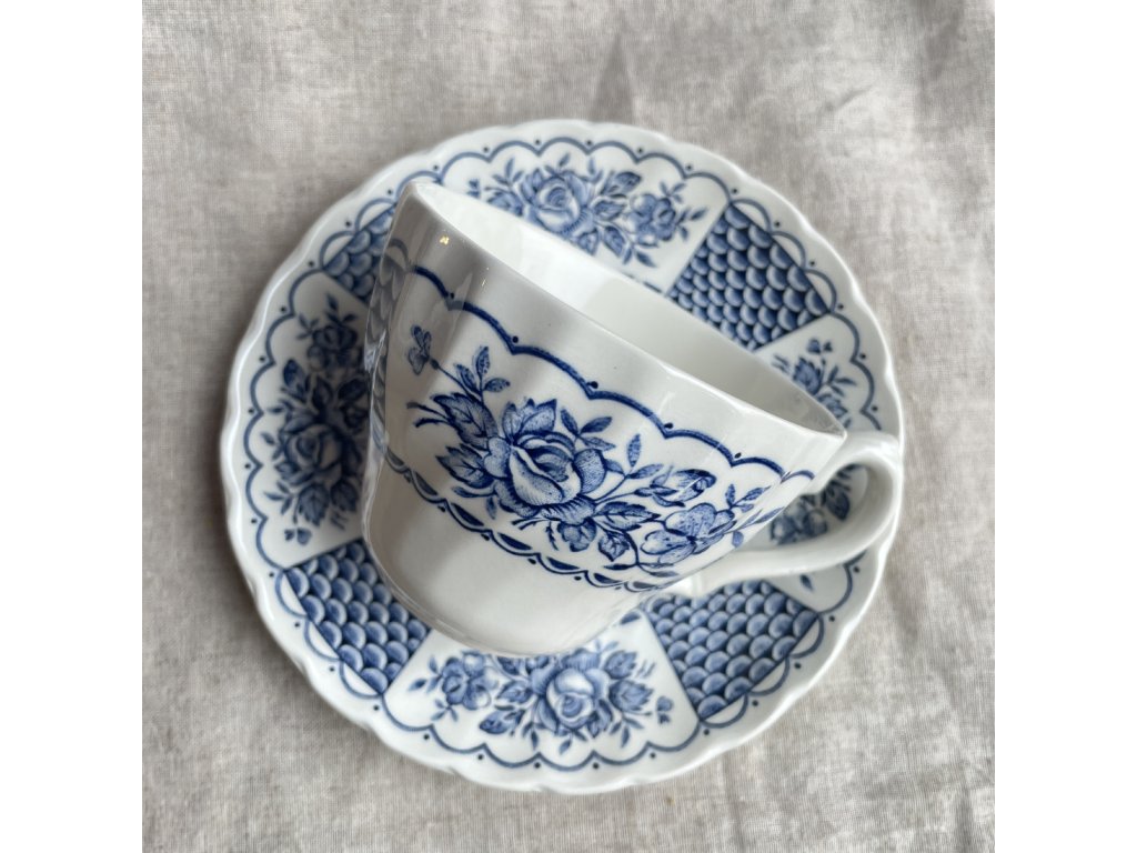 Šálek s podšálkem je vyroben z kvalitního anglického ironstonu a zdoben jemným modrobílým dekorem Melody, který působí elegantně a nadčasově.