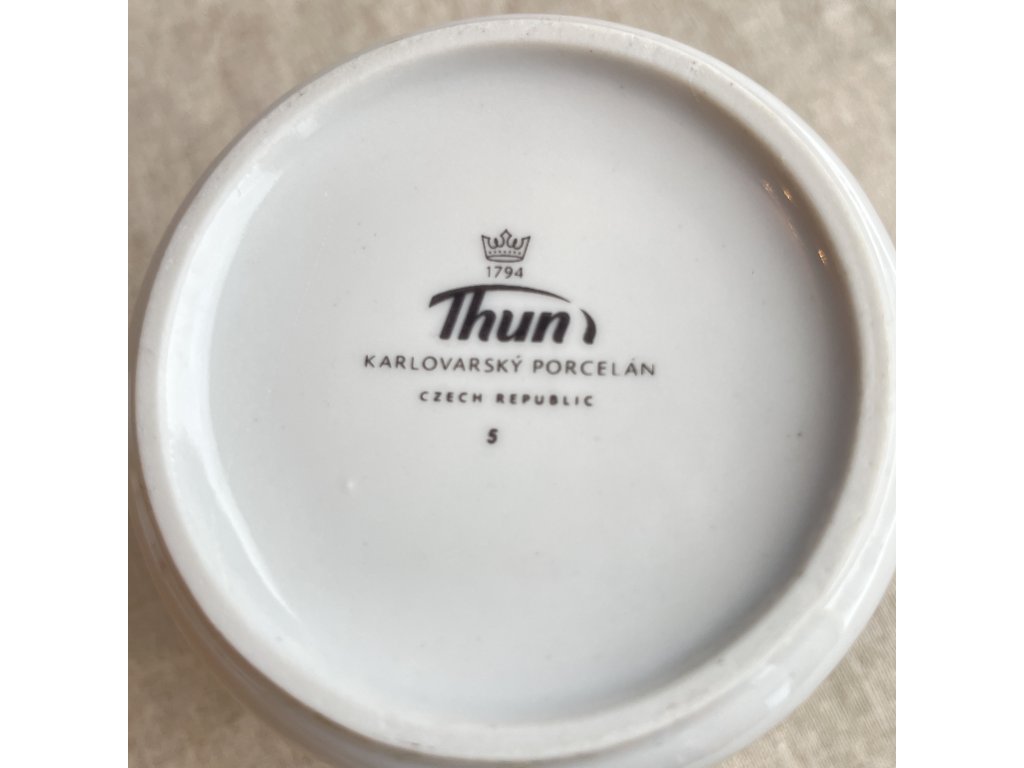 Porcelánový hrnek je vyroben z kvalitního bílého porcelánu a pochází z produkce tradiční české porcelánky Thun, známé dlouhou historií a vysokou úrovní zpracování.
