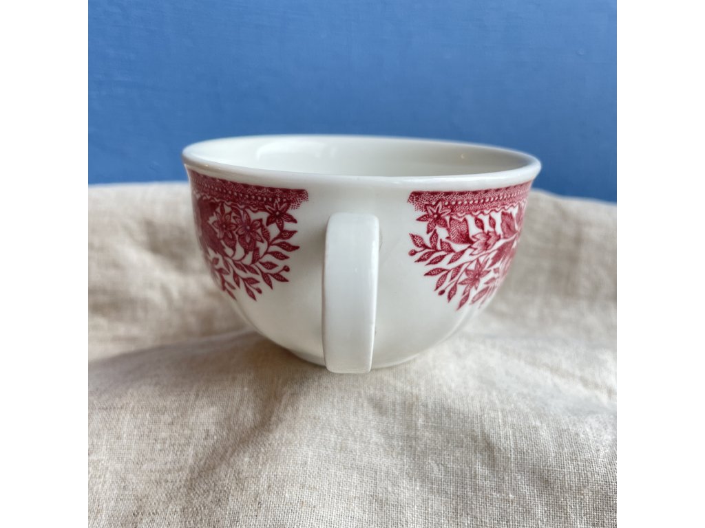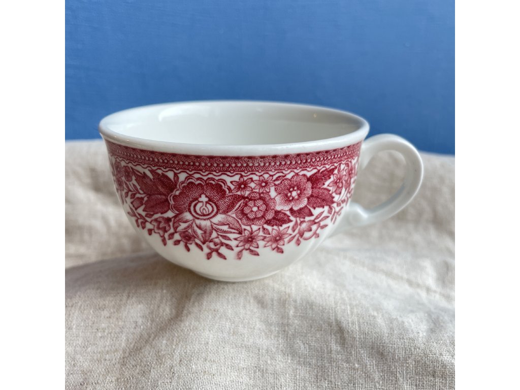 Hrnek je vyroben z kvalitního vitroporcelánu a zdoben jemným červeným transferovým dekorem s bohatými květinovými motivy, typickými pro oblíbenou řadu Fasan.