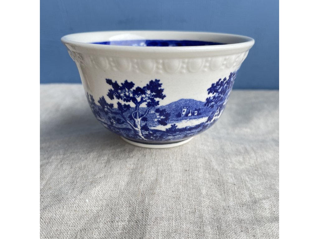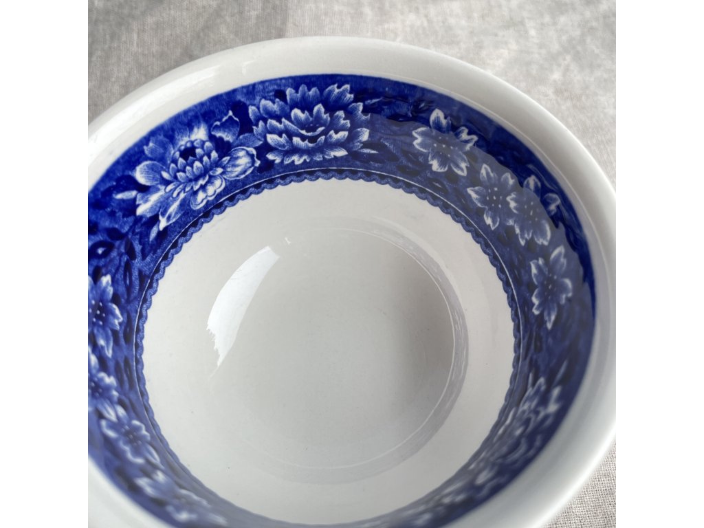 Motiv plynule obíhá celý obvod hrnku a je proveden v hlubokém kobaltově modrém odstínu, který krásně kontrastuje se světlým podkladem.