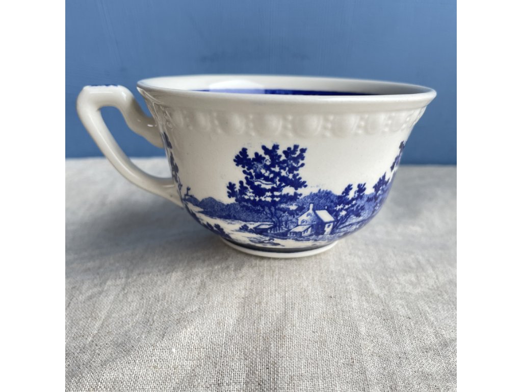 Porcelánový hrnek nese klasický modrobílý dekor Rusticana, typický pro tradiční produkci evropských manufaktur.