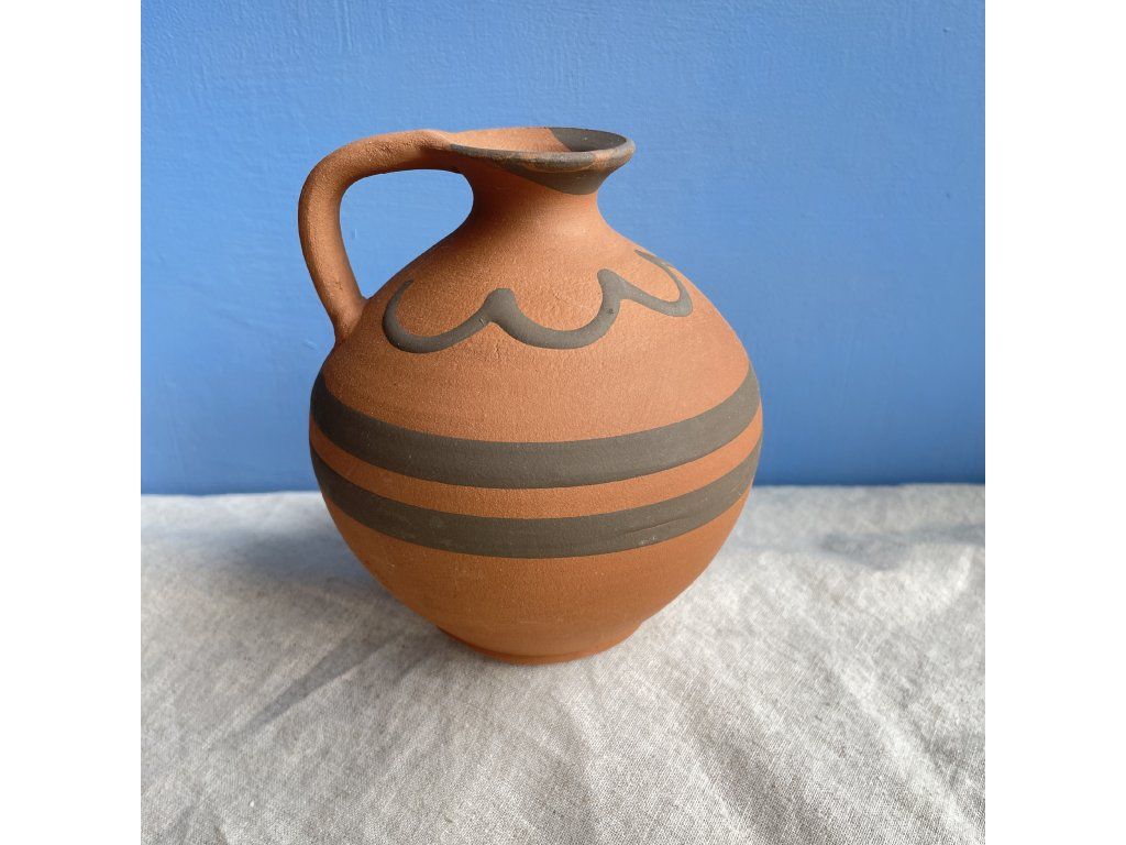 Povrch vázy je neglazovaný, s typickou matnou strukturou pálené hlíny v teplém terakotovém odstínu.