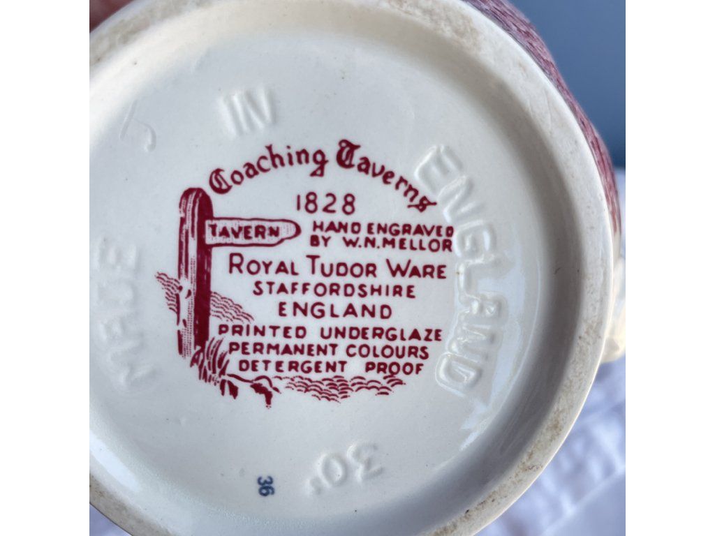 Značka potvrzuje původ v anglickém Staffordshiru a zařazení do produkce Royal Tudor Ware, přičemž dekor vychází z rytin W. N. Mellora.