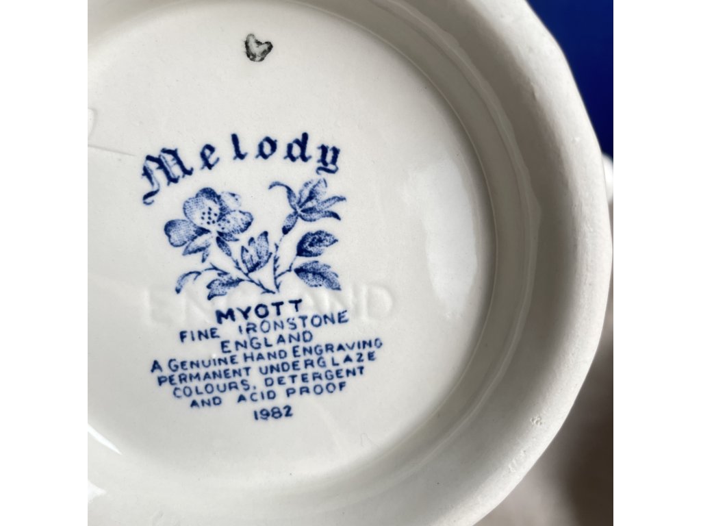 Povrch zdobí typický modrobílý podglazurní dekor s růžemi a drobnými květy, doplněný segmentovým lemem, který je pro řadu Melody charakteristický.