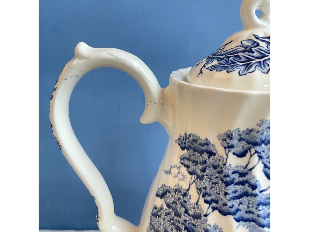 Konvice je krásným příkladem anglického modrobílého transferware, vhodným jak k praktickému použití, tak jako sběratelský nebo dekorativní kus pro milovníky tradiční britské keramiky.