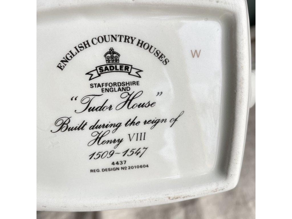 Sadler Staffordshire England kolekce English Country Houses – Tudor House, značka odkazuje na známého anglického výrobce keramiky Sadler, působícího v oblasti Staffordshire, která je tradičním centrem výroby porcelánu a kameniny.