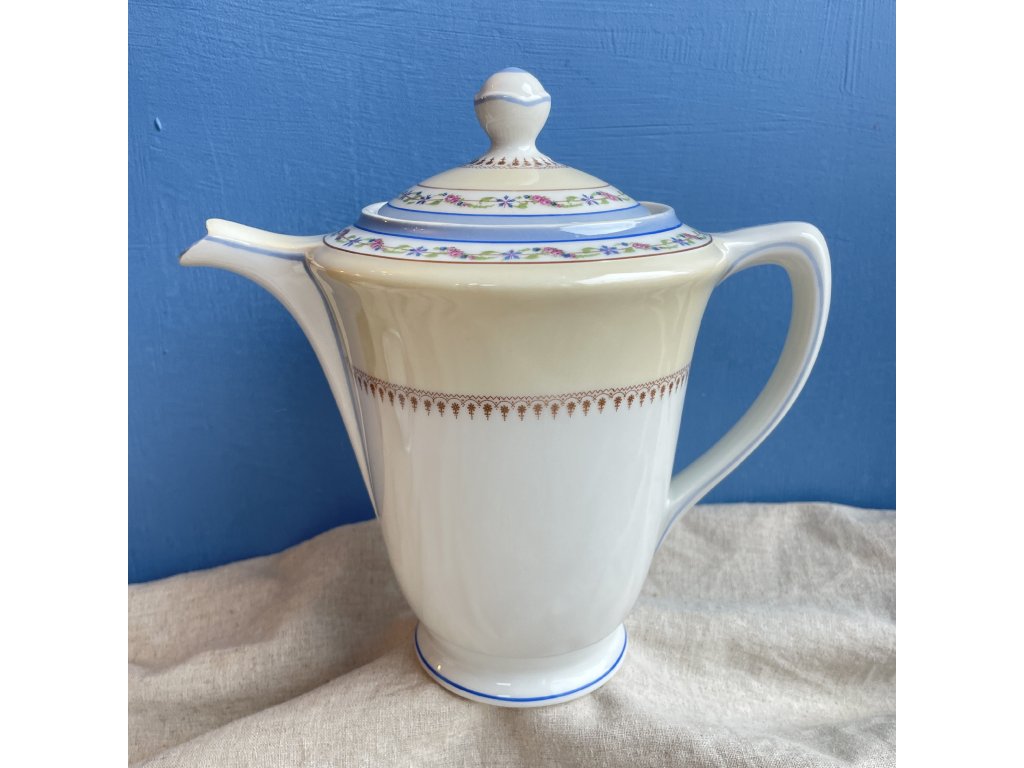 Porcelánová konvice s pokličkou je vyrobena z jemného francouzského porcelánu s charakteristickým lehce krémovým tónem a elegantně protáhlým tvarem.