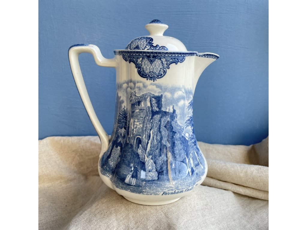 Dekor na těle konvice představuje romantizovanou historickou scénu s ruinami hradu Farnham Castle, jak byl zachycen v roce 1792 podle rytiny Fennella.