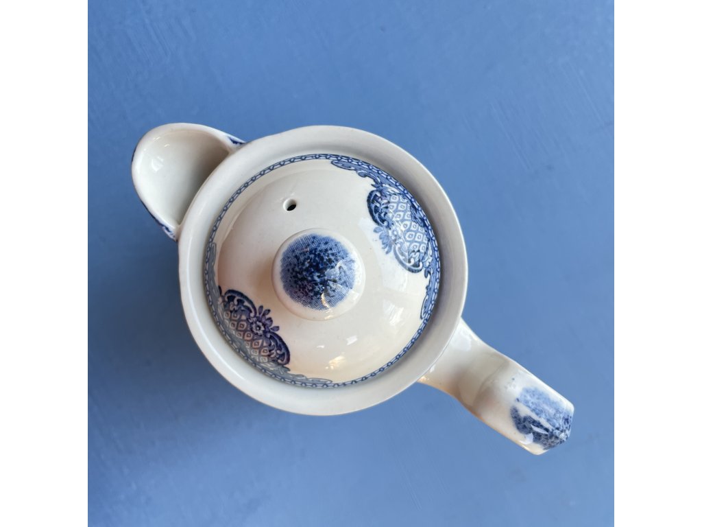 Tvar konvice je typicky anglický – lehce baňatý s výrazným držadlem a zahnutým zobáčkem, které umožňují snadné nalévání.