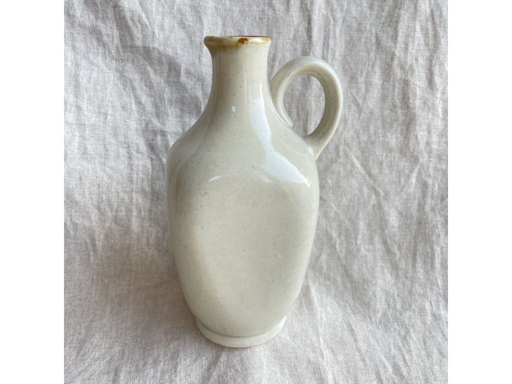 Povrch je pokryt světlou, krémově béžovou glazurou s jemnými tečkami, typickými pro kameninové výrobky.