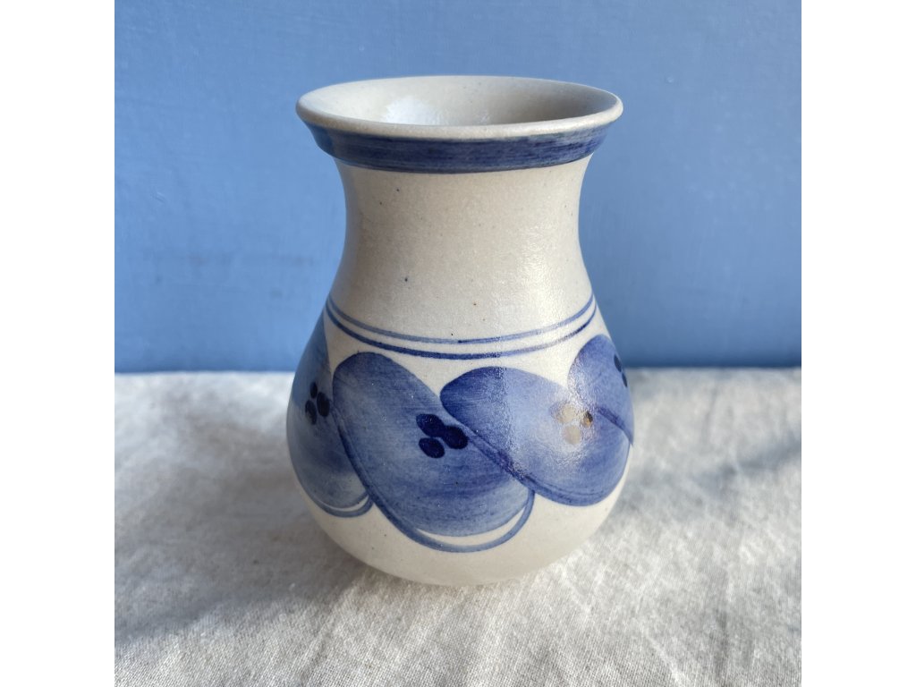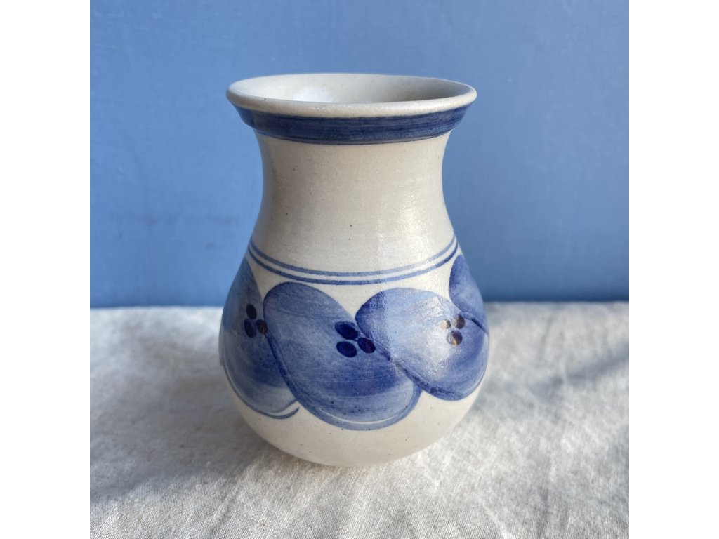 Horní část je zdobena tenkým kobaltově modrým proužkem, který decentně orámuje hrdlo.
