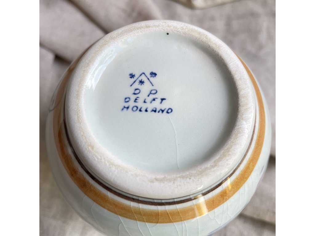 Ručně malovaná váza z Delftu pochází z dílny označené značkou DP Delft Holland, která patří mezi tradiční výrobce nizozemské majoliky navazující na dlouhou linii delftské keramiky.