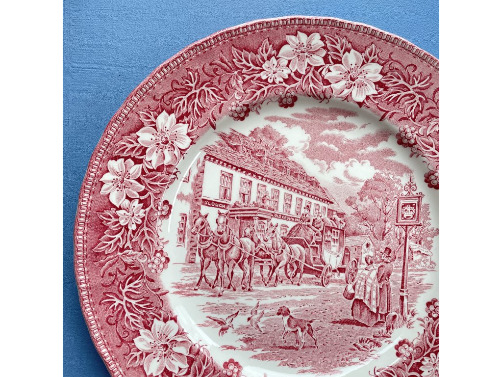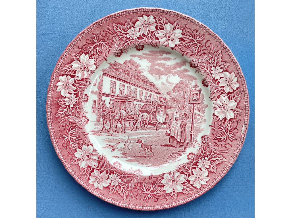 Talíř pochází z anglické produkce Royal Tudor Ware ze Staffordshiru a je součástí série „Coaching Taverns“, inspirované érou dostavníků a tradičních hostinců 19. století.