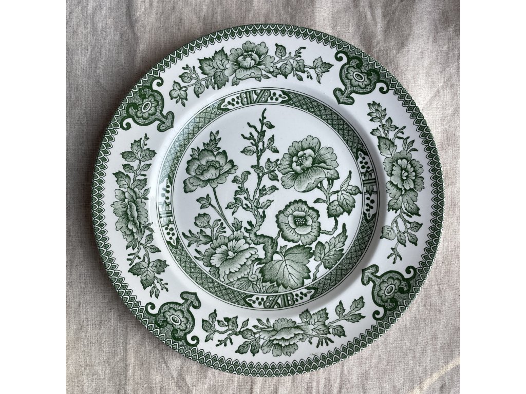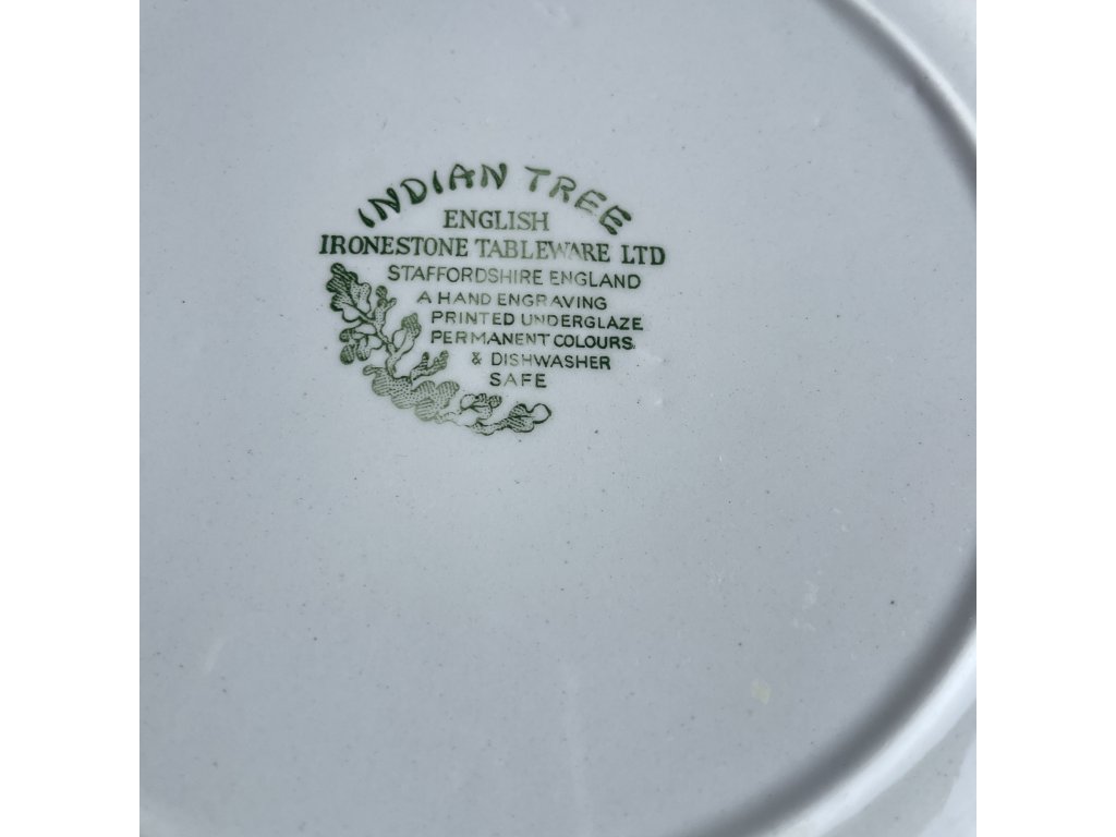 Mělký talíř je vyroben z kvalitní anglické kameniny typu ironstone a zdoben klasickým dekorativním motivem Indian Tree, který patří mezi tradiční vzory anglického stolního nádobí.