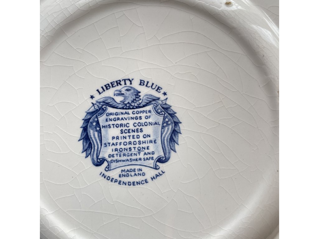Dekor nese název Liberty Blue a vychází z tradice detailních historických scén inspirovaných koloniální Amerikou, které byly v Anglii velmi oblíbené zejména ve druhé polovině 20. století.