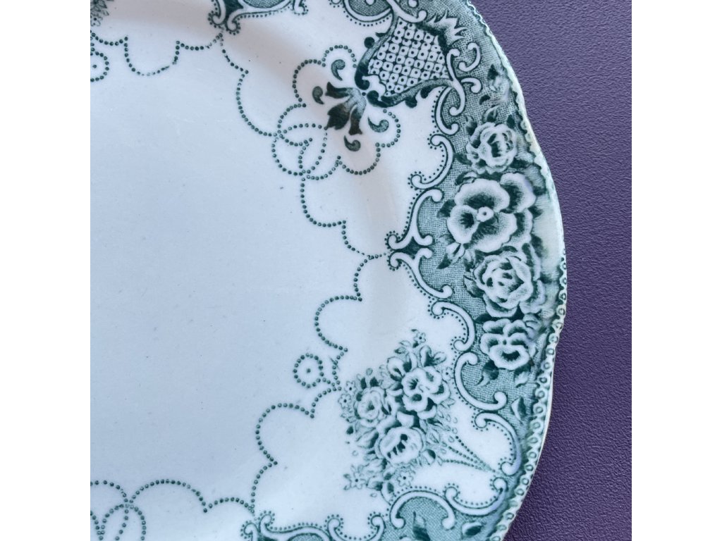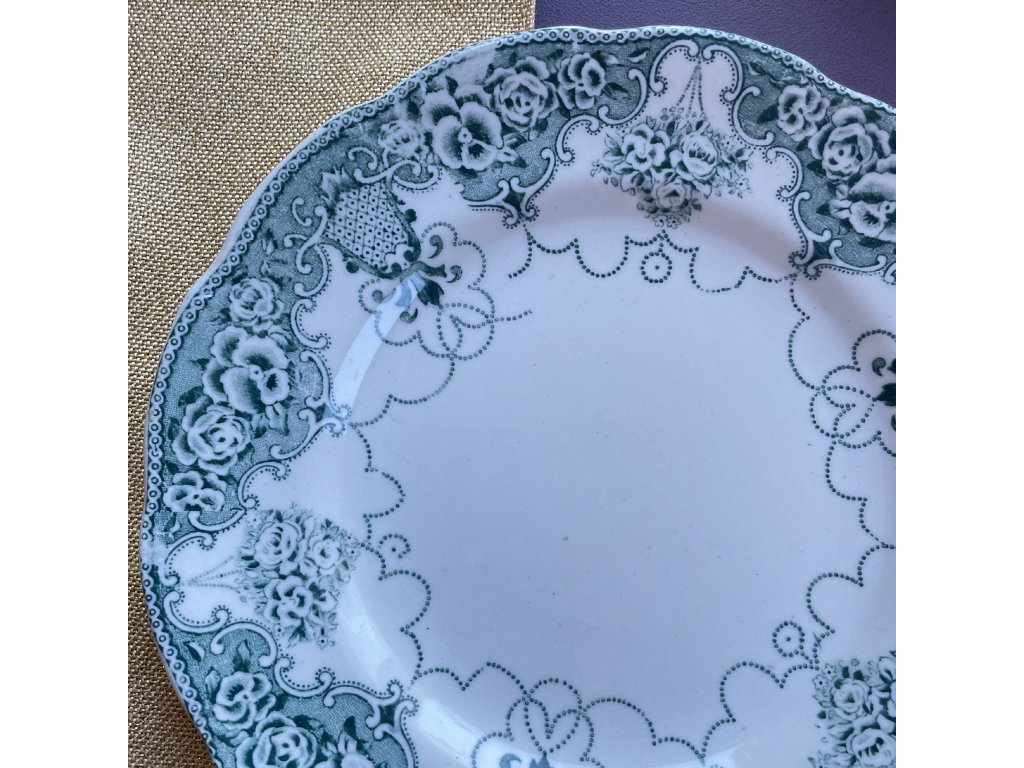 Mělký talíř zaujme jemným zeleným květinovým dekorem, který se vine po celém okraji v bohatě členěném, lehce zvlněném tvaru.