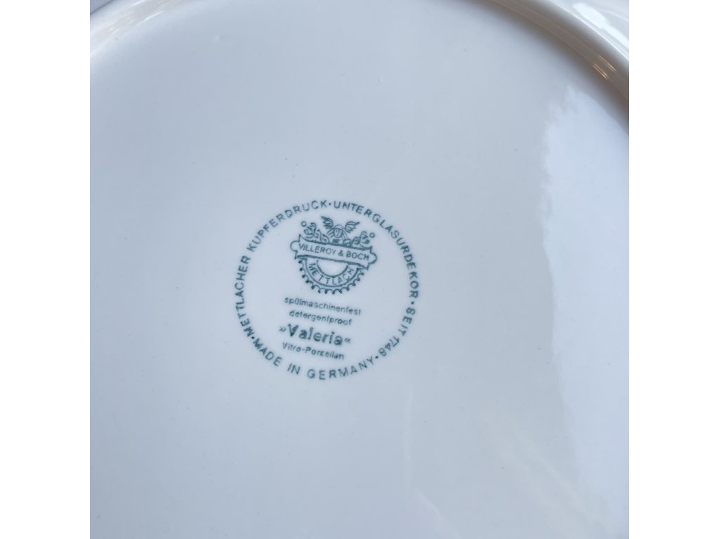 Mělký talíř je součástí porcelánové kolekce Valeria značky Villeroy & Boch, vyráběné v německém Mettlachu.