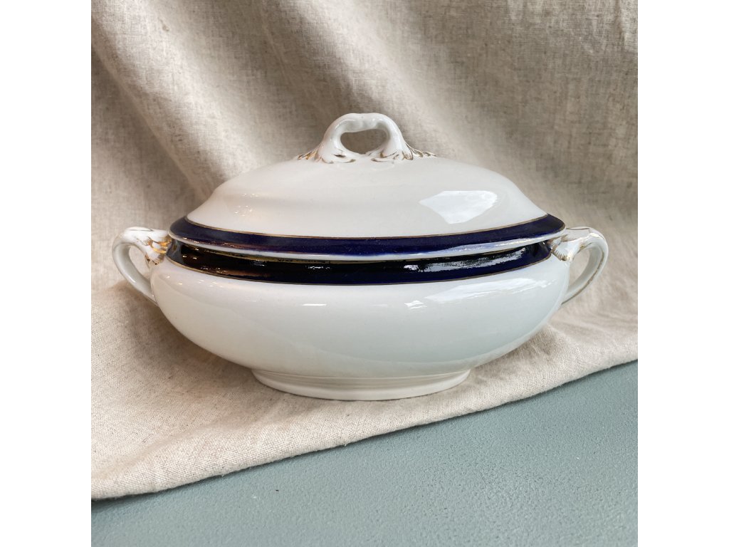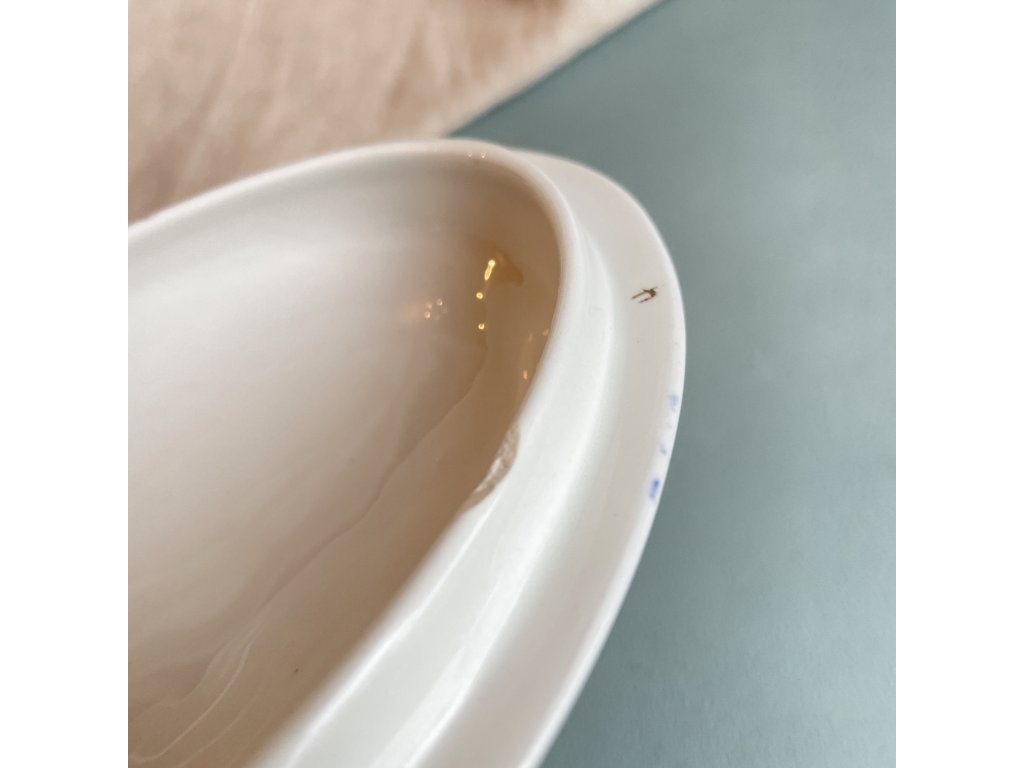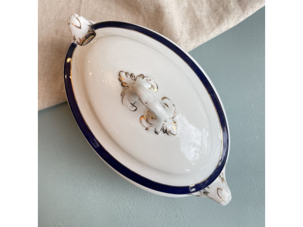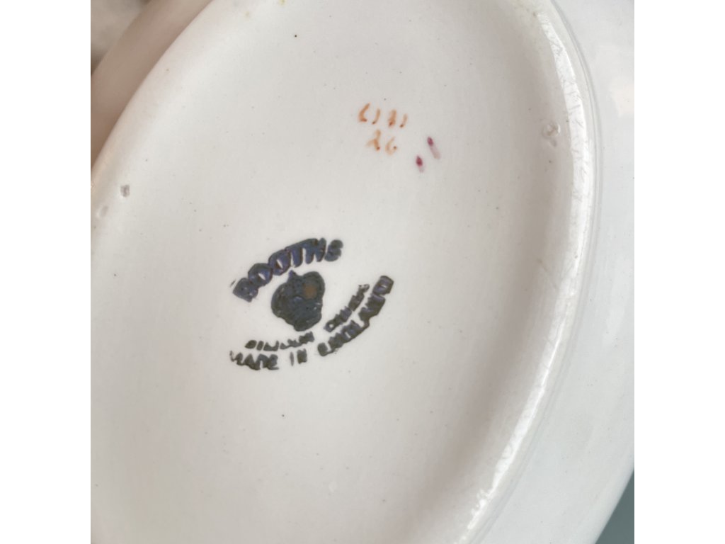 Kameninová mísa s víkem pochází z anglické manufaktury Booths, známé produkcí jemné kameniny a porcelánu ve Staffordshire.