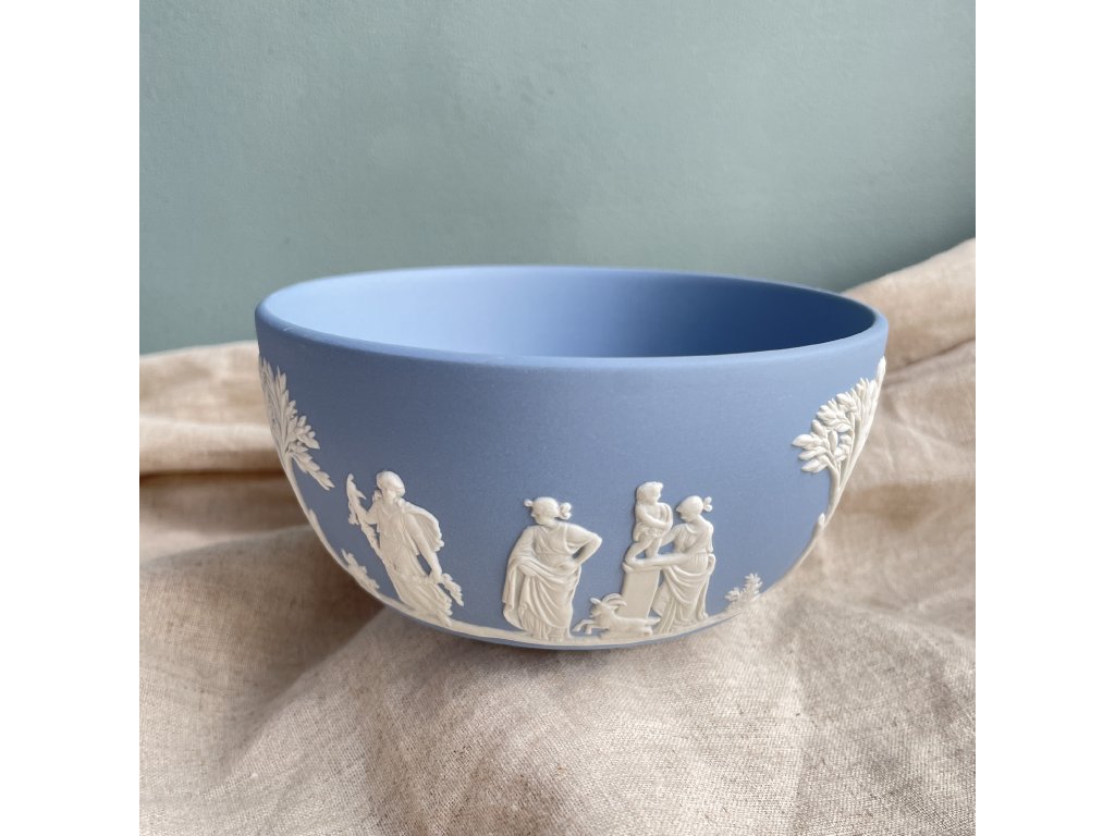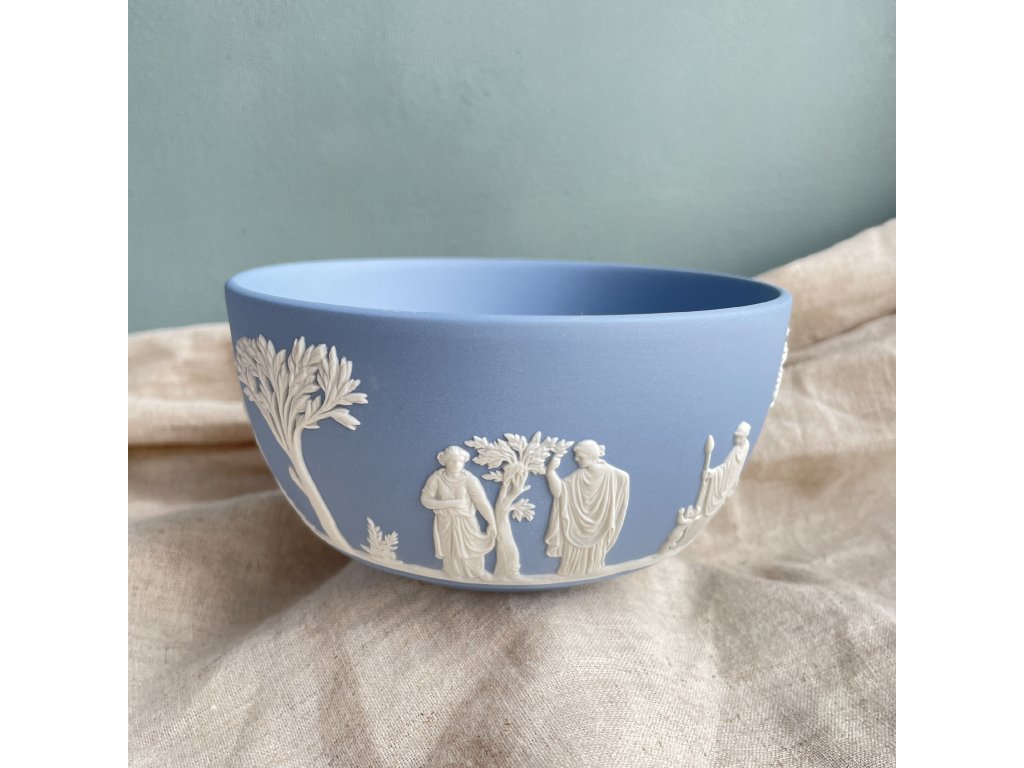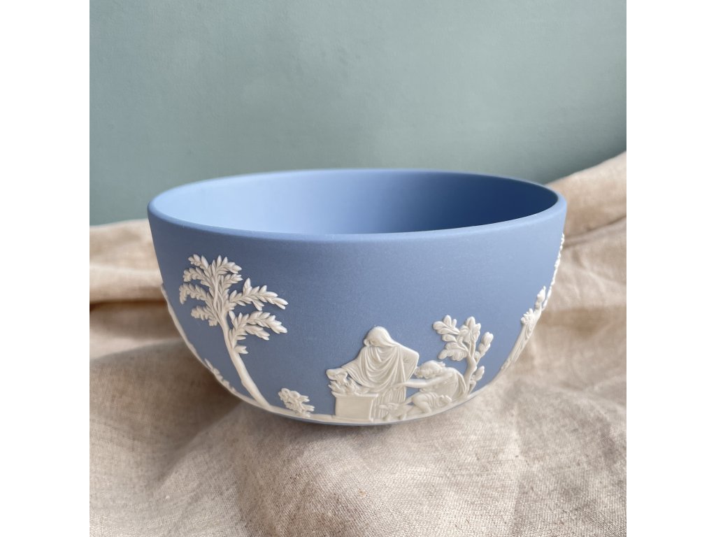Miska je vyrobena z proslulého modrého kameninového materiálu známého jako jasperware, který je úzce spjat se značkou Wedgwood.