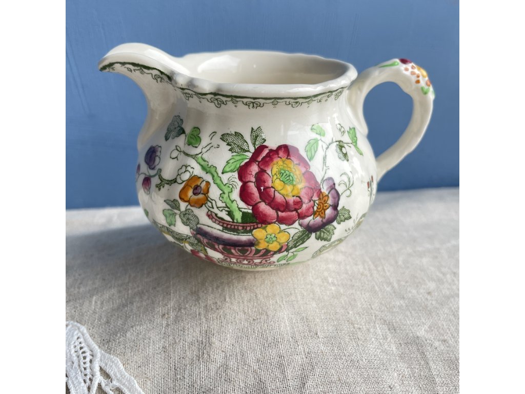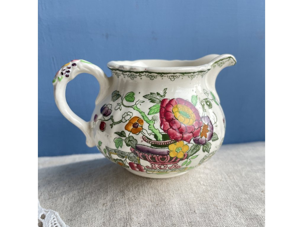 Mlékovka je vyrobena z anglické jemné kameniny (ironstone) a pochází z produkce tradiční továrny Mason’s, konkrétně z dekoru Nabob.