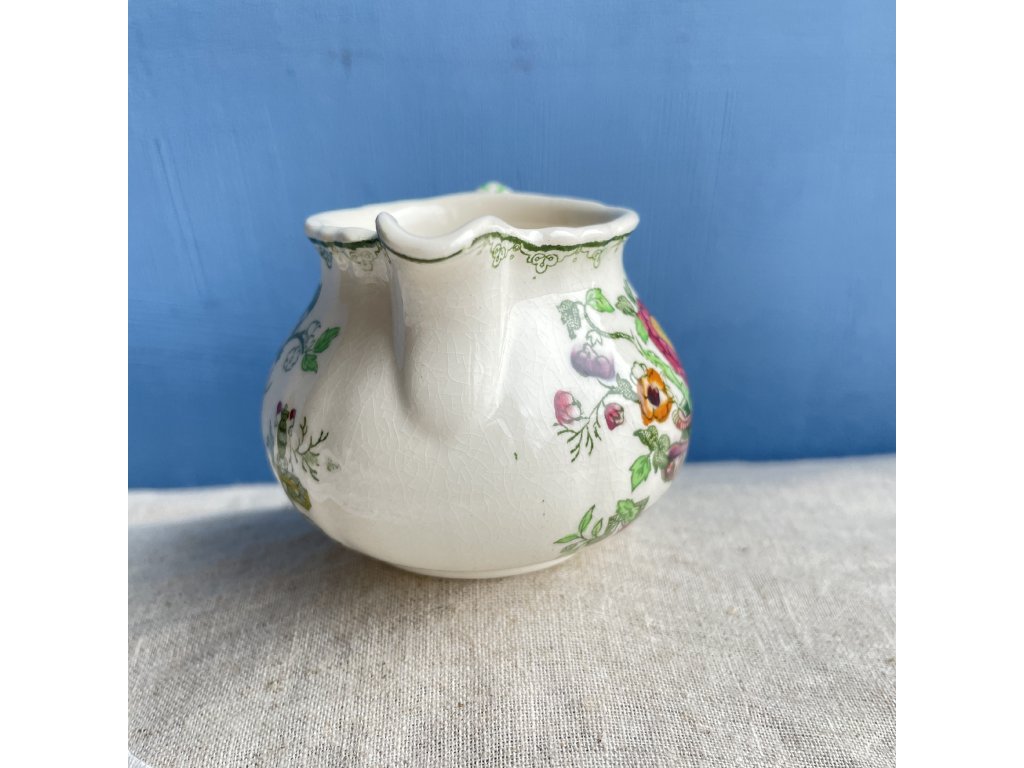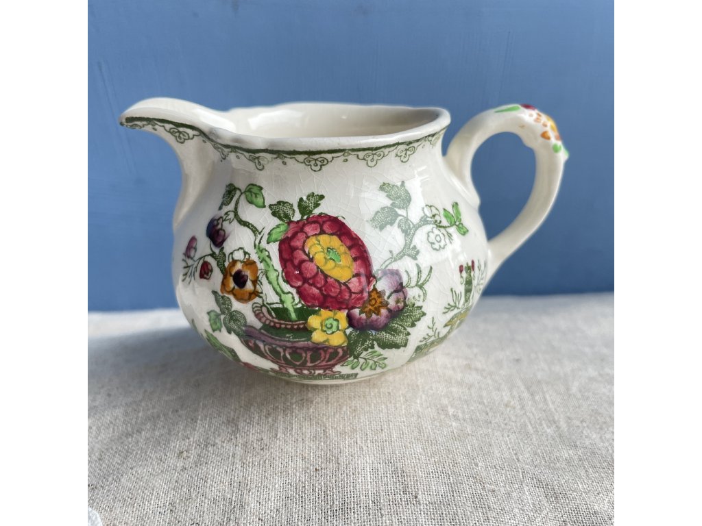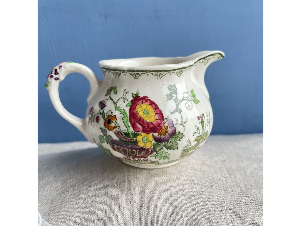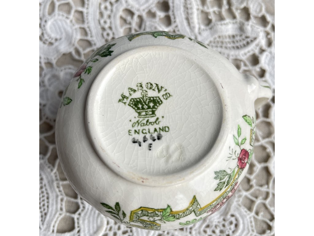 Mlékovka je vyrobena z anglické jemné kameniny (ironstone) a pochází z produkce tradiční továrny Mason’s, konkrétně z dekoru Nabob.