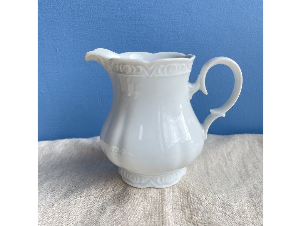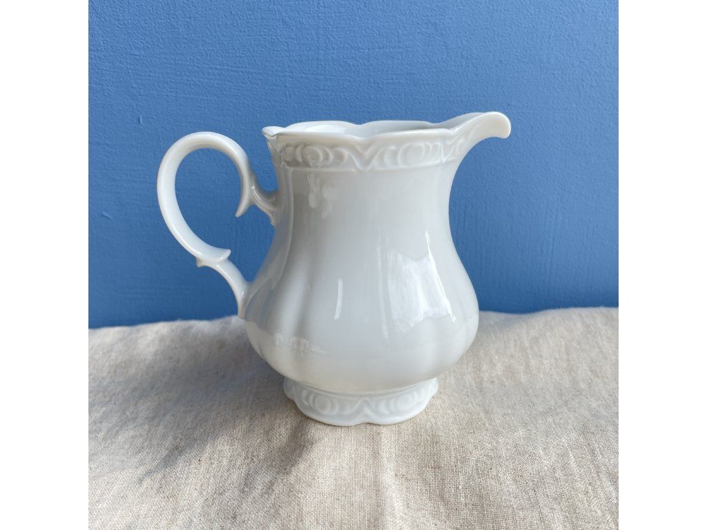 Porcelánová mlékovka zaujme svou elegantní, klasicky tvarovanou siluetou a jemným plastickým zdobením.