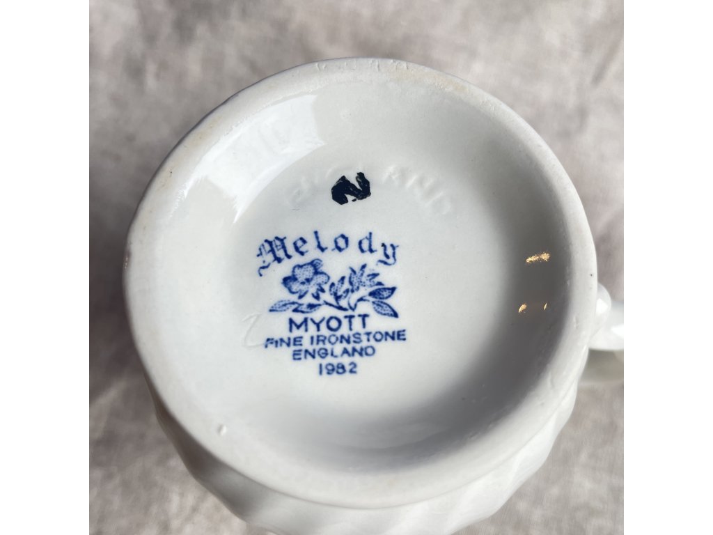 Porcelánová mlékovka pochází z anglické produkce Myott, vzor Melody, datovaný do roku 1982.