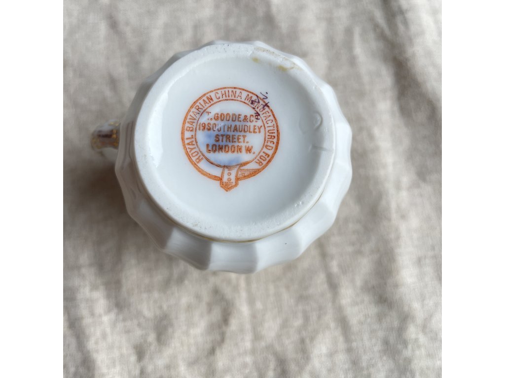 Na spodní straně se nachází tištěná značka T. Goode & Co s označením Royal Bavarian China Manufactured for T. Goode & Co., 19 South Audley Street, London W., která potvrzuje, že se jedná o porcelán vyrobený v Bavorsku pro renomovaný londýnský obchod specializovaný na luxusní porcelán.