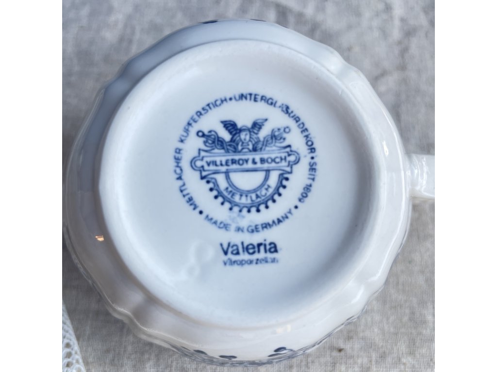 Mlékovka je součástí porcelánového servisu „Valeria“ od německé značky Villeroy & Boch, vyráběného v závodě Mettlach.