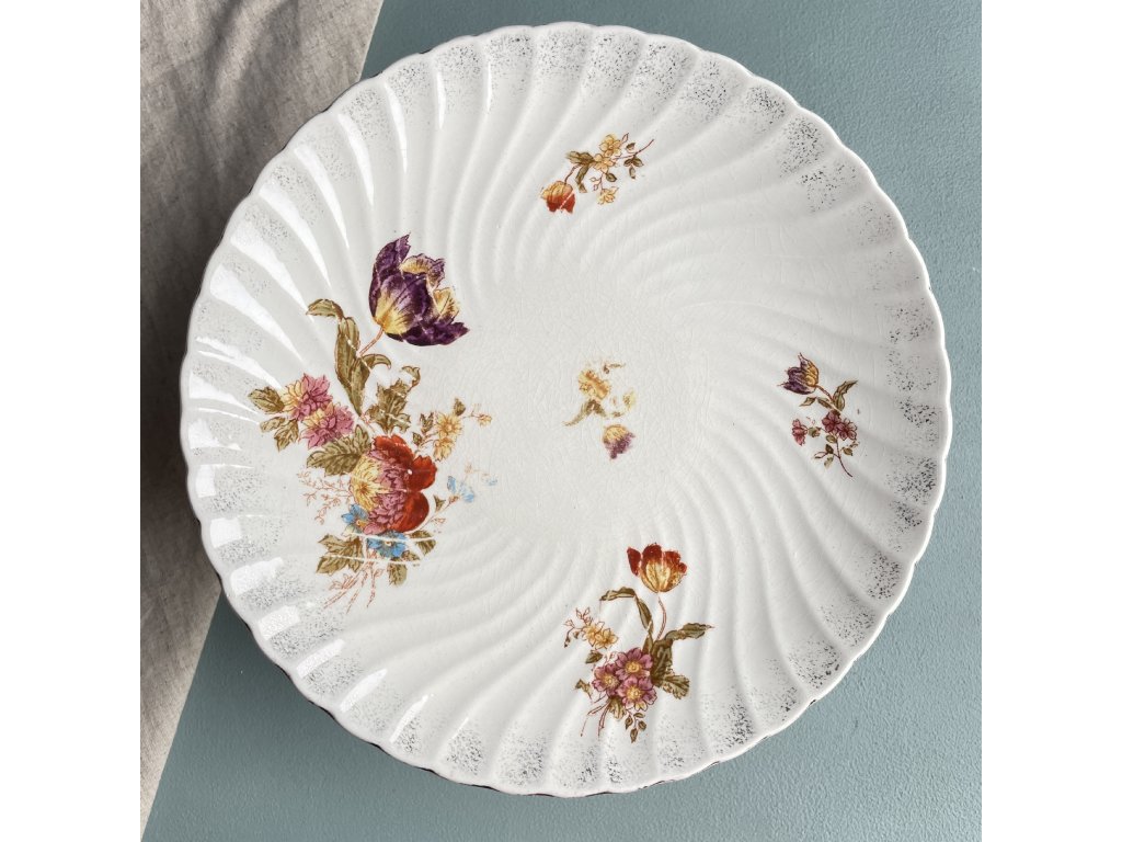 Květinový dekor je rozmístěn asymetricky po ploše talíře.