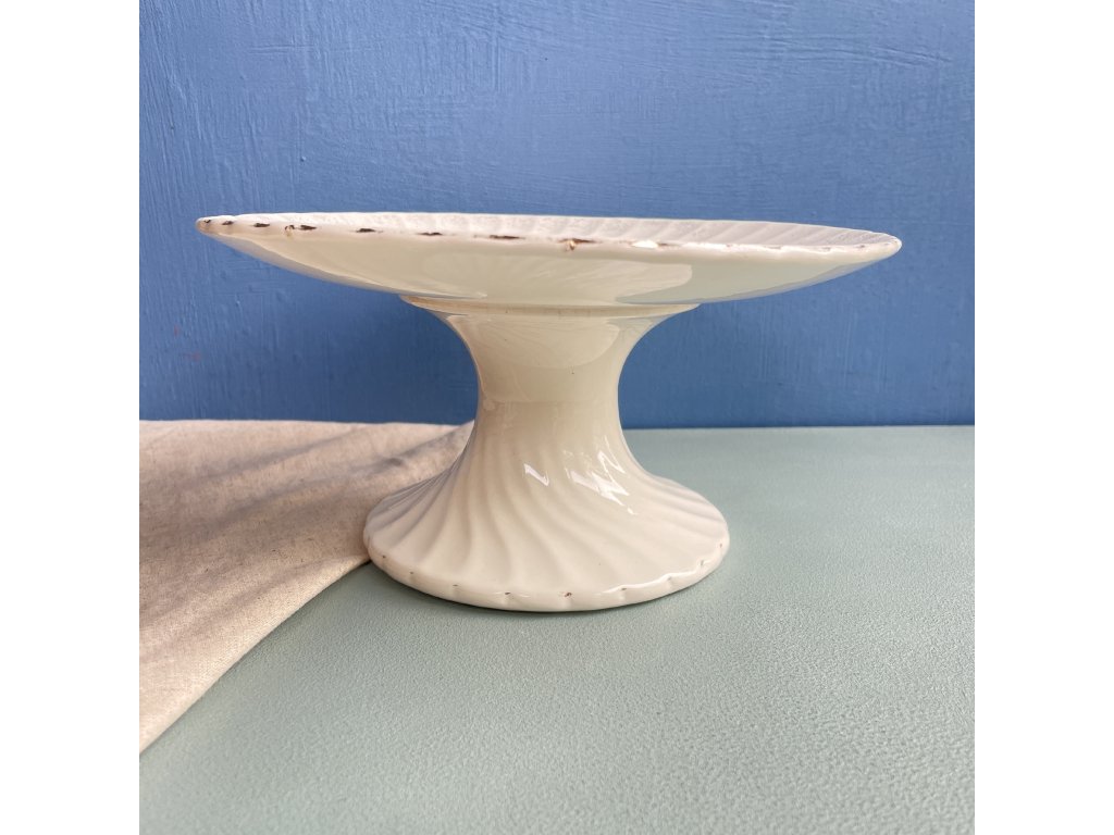 Vyroben je z kameniny v barvě slonové kosti s výrazným spirálovým reliéfem jak na noze, tak na talířové části.