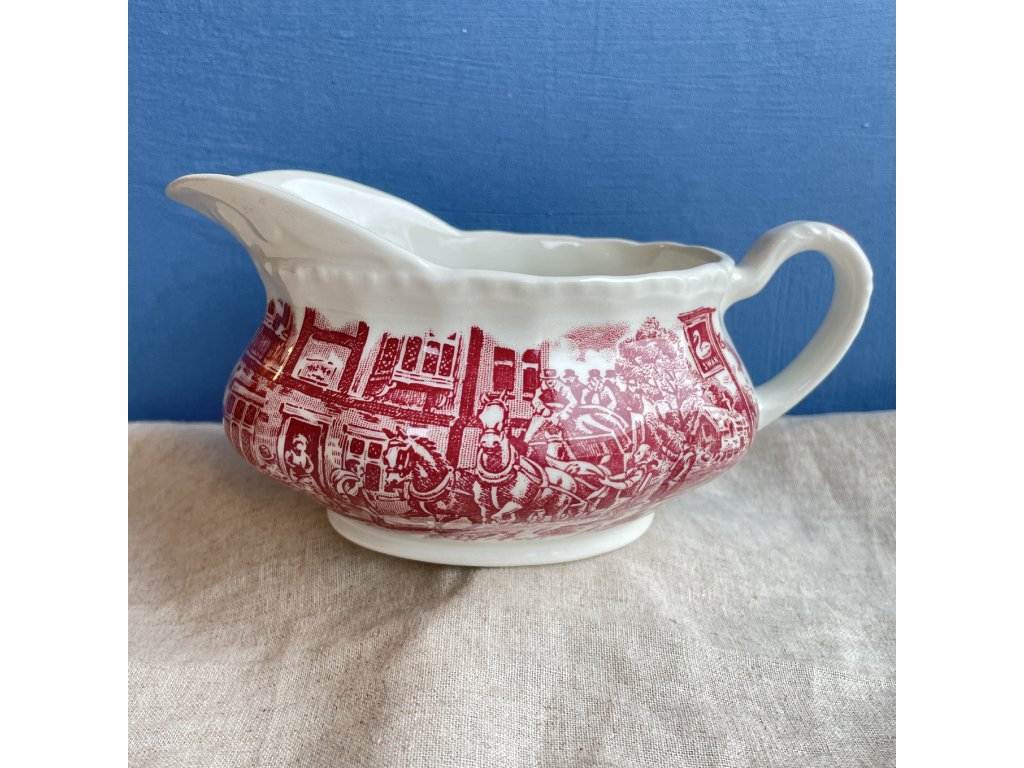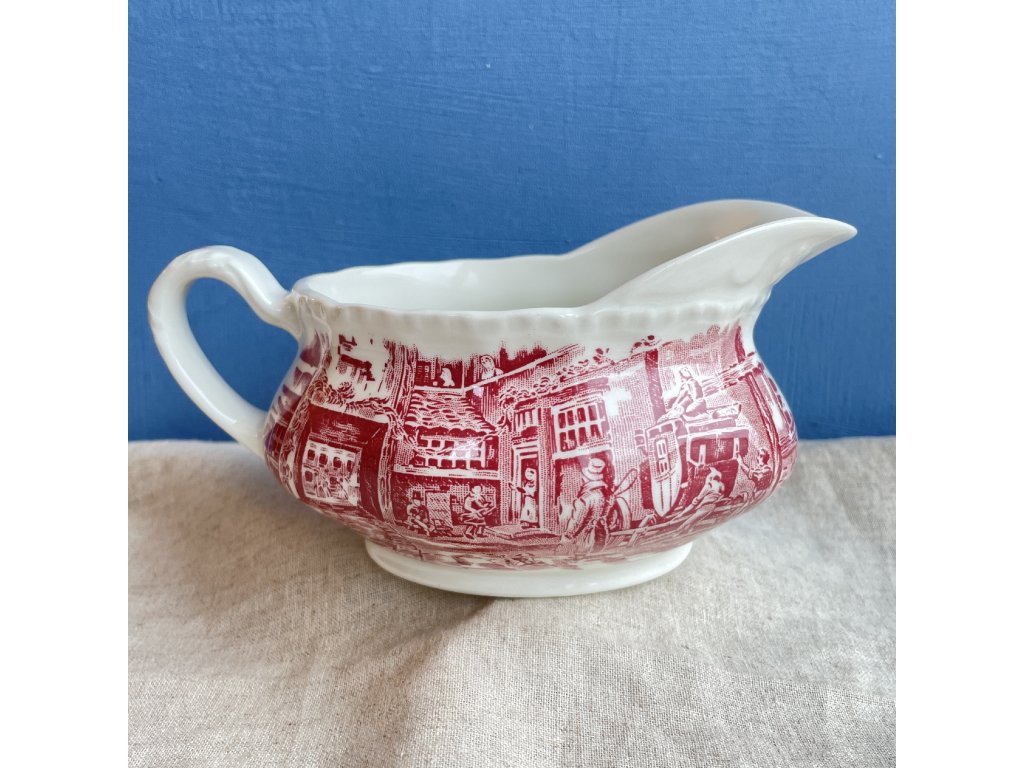 Kameninový omáčník s červeným transferovým dekorem.